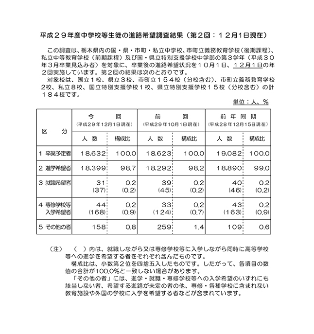 - 平成29年度 中学校等生徒の進路希望調査報告書(第2回:平成29年12月1日現在)