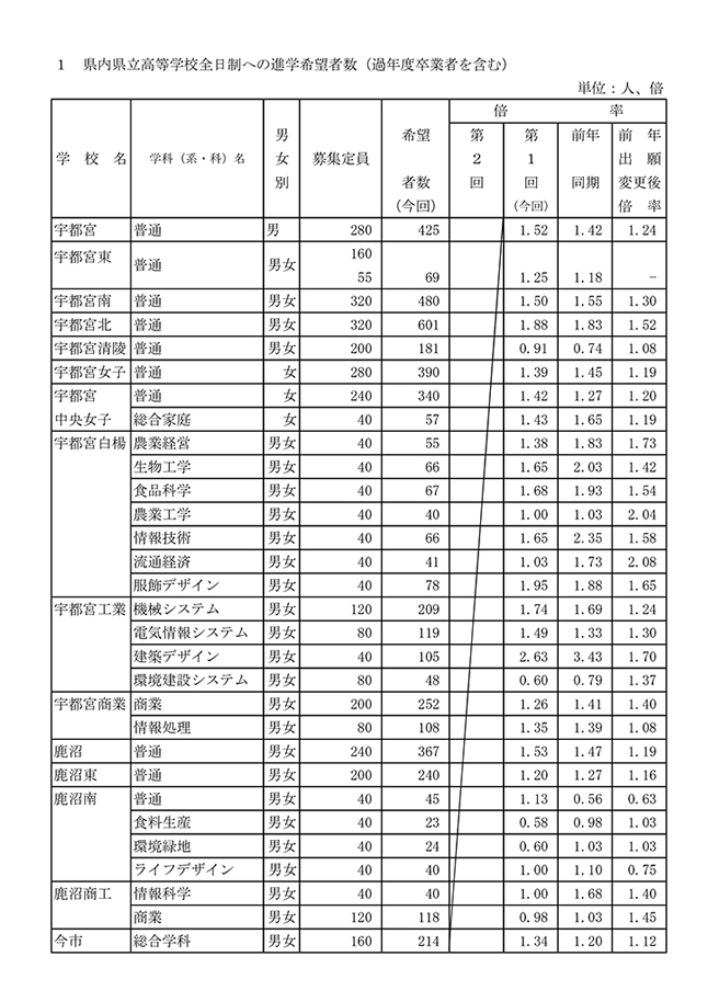 県内県立高等学校全日制への進学希望者数(過年度卒業者を含む) - データのダウンロード