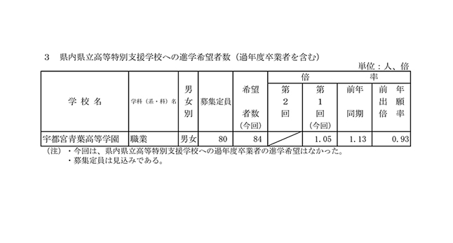県内県立高等特別支援学校への進学希望者数(過年度卒業者を含む) (更新)- データのダウンロード