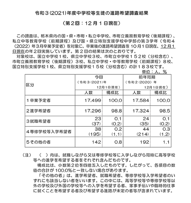- 令和3(2021)年度 中学校等生徒の進路希望調査報告書(第2回:令和3(2021)年12月1日現在)