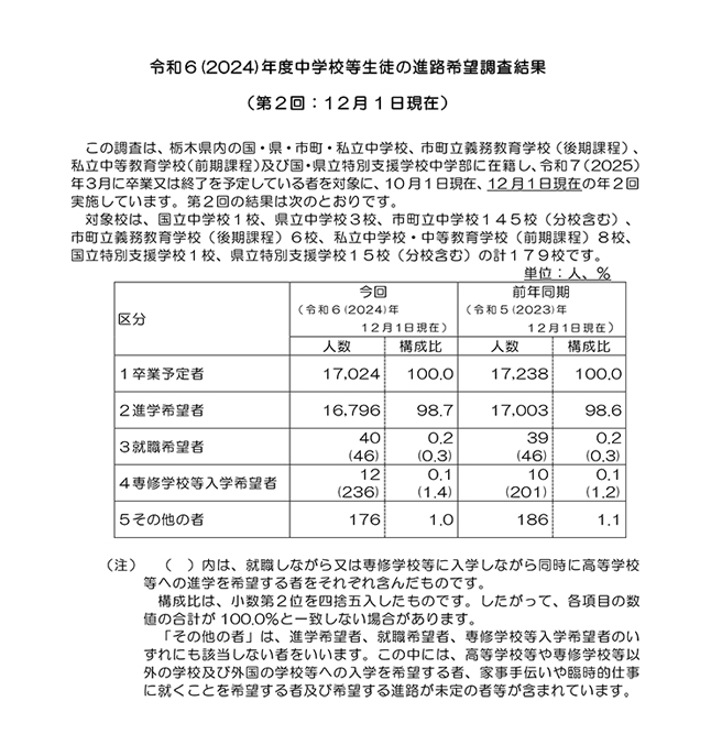 - 令和6(2024)年度 中学校等生徒の進路希望調査報告書(第2回:令和6(2024)年12月1日現在)