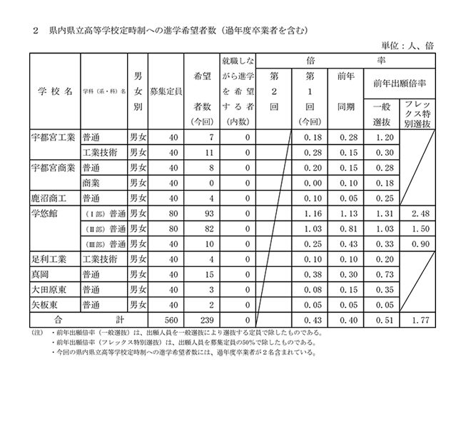 県内県立高等学校定時制への進学希望者数(更新)- データのダウンロード