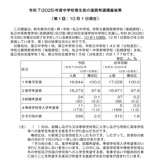 - 令和7(2025)年度 中学校等生徒の進路希望調査報告書(第1回:令和7(2025)年10月1日現在)