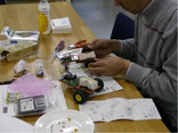 技術・家庭科 「自走ロボットを活用した制御とプログラミング」 自律型二輪駆動ロボットを製作し、ひらがなで記述することができるプログラミング言語を利用して、製作したロボットを制御しました。 |