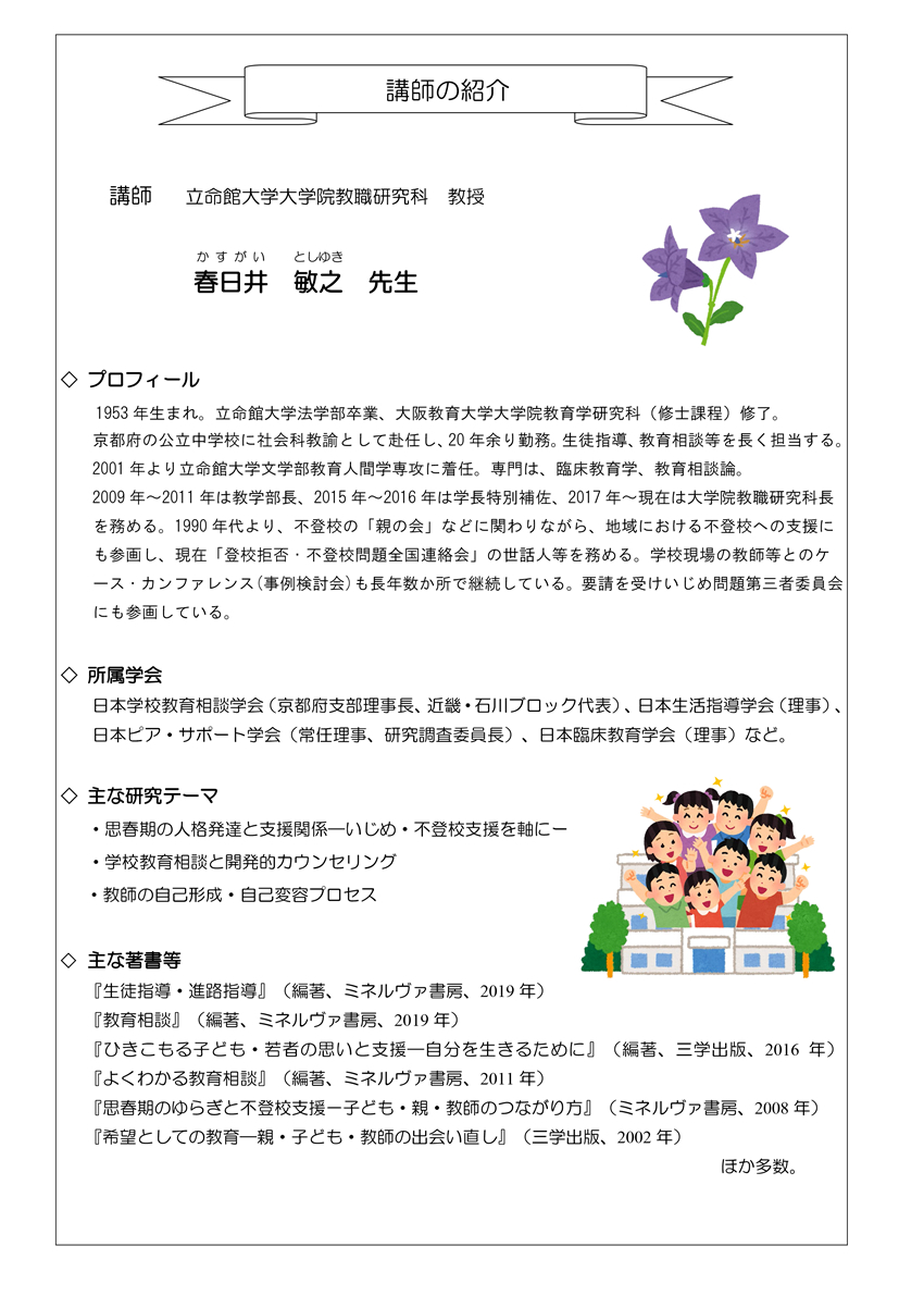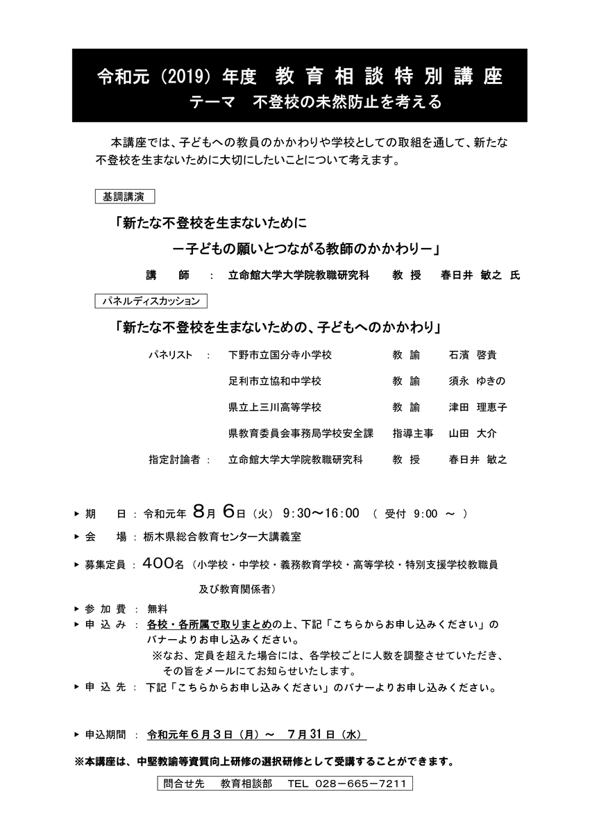 令和元(2019)年度 教育相談特別講座のご案内及び申込入口