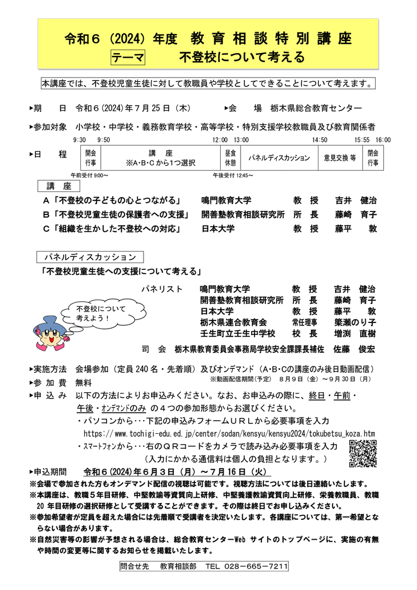 令和6(2024)年度 教育相談特別講座のご案内及び申込入口