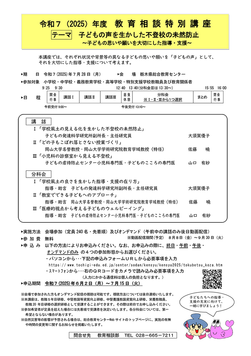 令和7(2025)年度 教育相談特別講座のご案内 ダウンロードはこちら