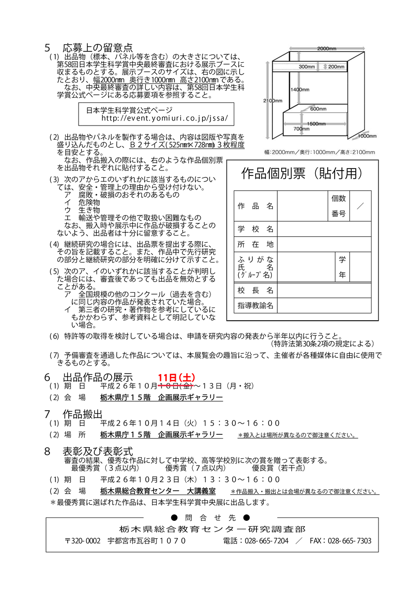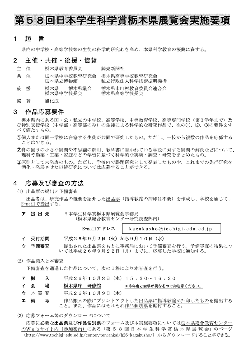 第58回 日本学生科学賞栃木県展覧会 実施要項(平成26年度)