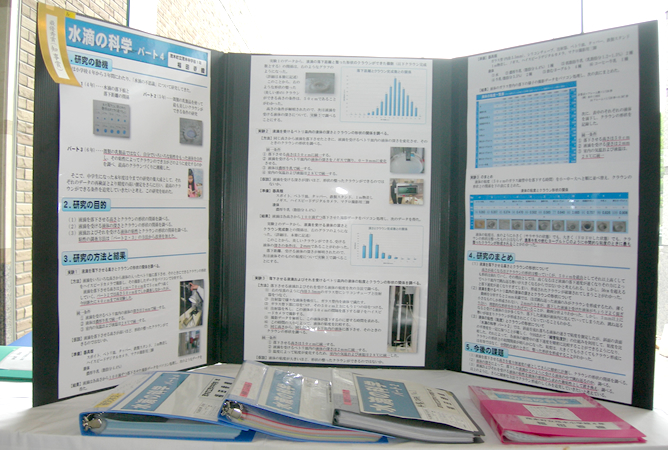 - 小学校の頃から水滴についての研究を積み重ねてきました。今年度は、水滴が落下したときにできるクラウンが最も美しくなる条件について研究しました。
