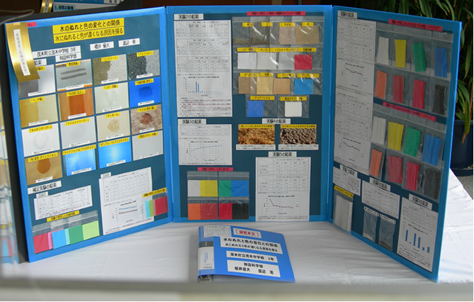 - 物の色が、乾いているときと水にぬれたときでは、見え方が異なることに興味をもち、水にぬれると色が濃く見える原因を探りました。