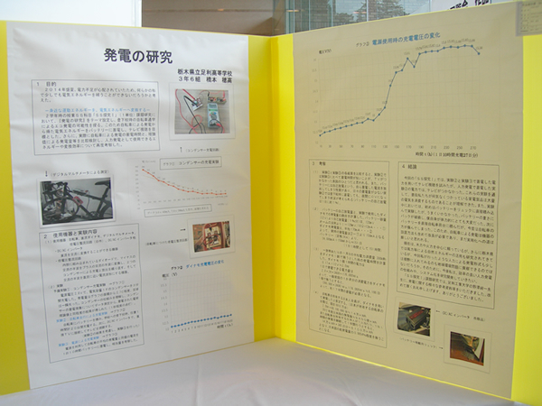 - 通学用の自転車にダイナモを取り付けて発電し、それをバッテリーに充電することによってどの程度の電力が得られるかを調べました。