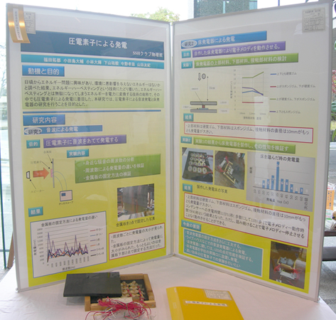 - 圧電素子による発電機を作製し、どのような音波や振動によって発電効率が上がるのかについて検証しました。
