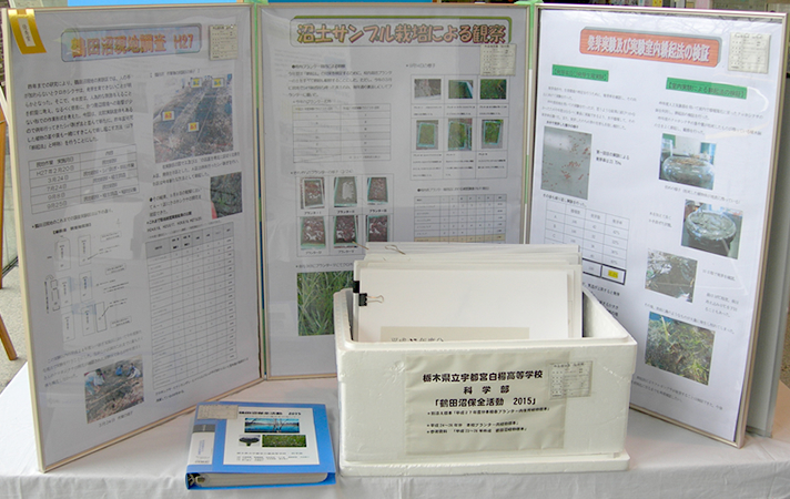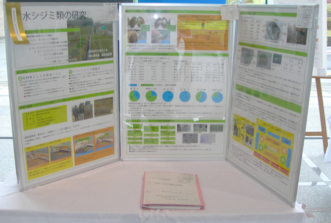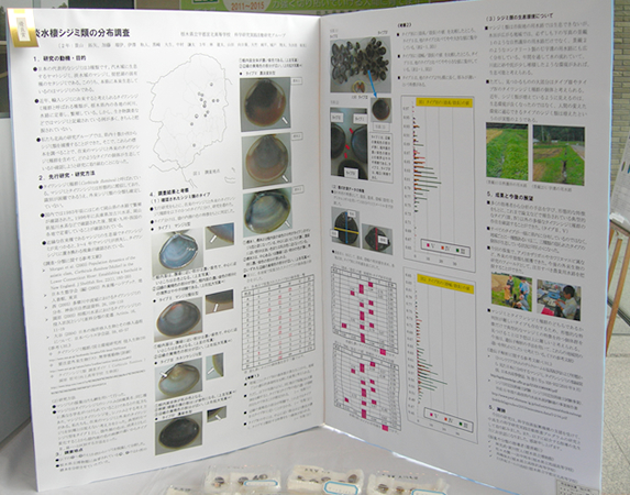 - 学校の近くにある農業用水路には、淡水シジミ類が多数生息していました。これらの識別法の研究や繁殖調査などを行いました。