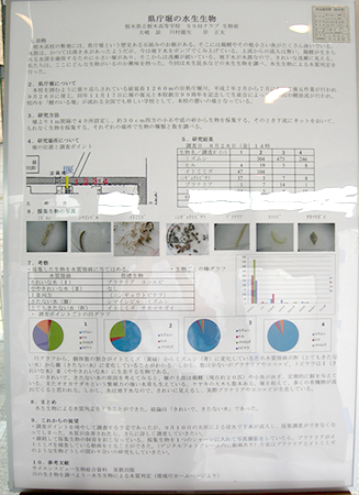 - 学校の近くにある堀の水には様々な生物が生息しています。どのような生物が生息しているかを調べることによって水質判定をしました。