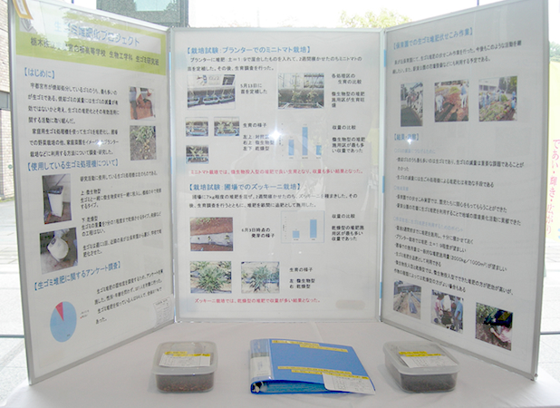 - 焼却処分されるゴミのうち、最も大きな割合を占めている生ゴミを堆肥としてリサイクルするための研究をしました。