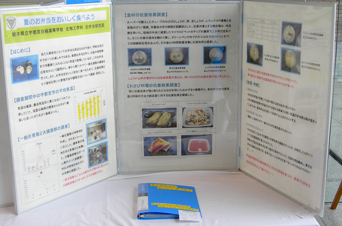 - お弁当の中に含まれる一般生菌数と大腸菌群数を調べ、お弁当の衛生管理について微生物学的観点から調査しました。