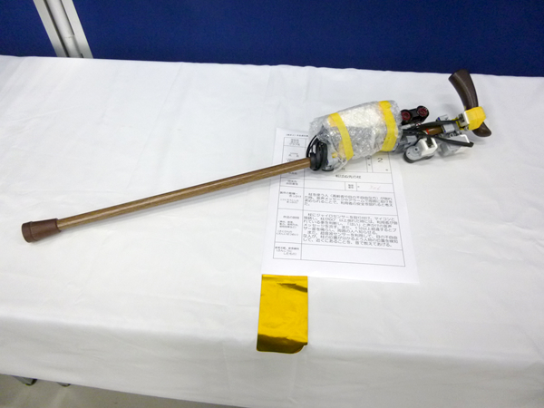 高齢者や目の不自由な方が杖を使う時に、もし転んでしまっても、助けを求めることができる道具ができないかと考え、この作品をつくりました。