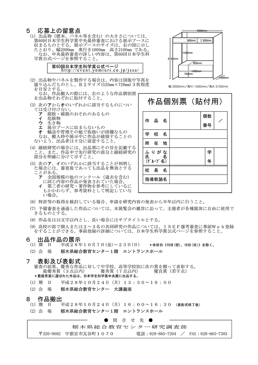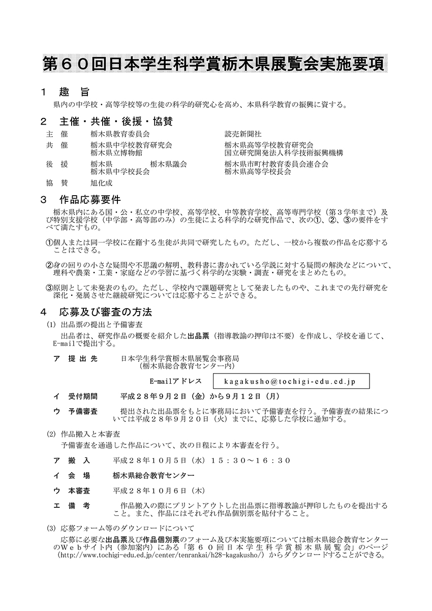 第60回 日本学生科学賞栃木県展覧会 実施要項(平成28年度)