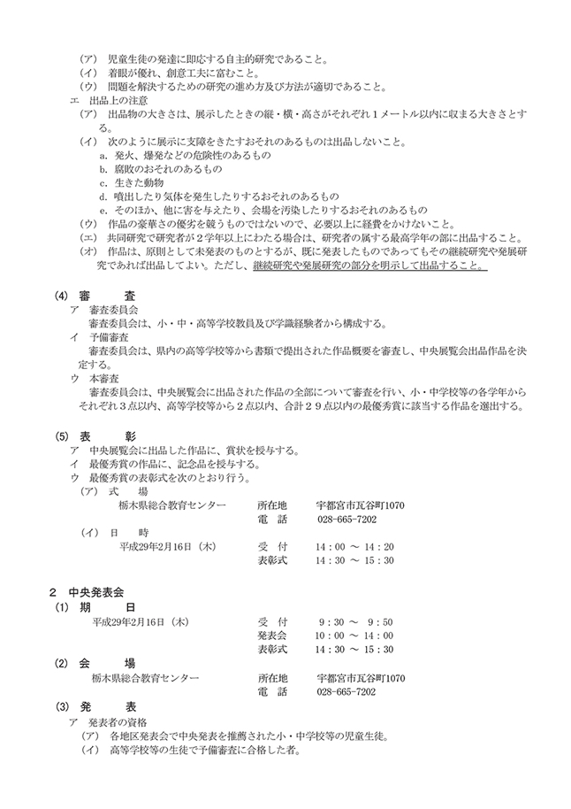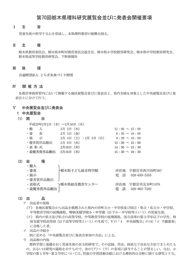 第70回栃木県理科研究展覧会並びに発表会(平成28年度)