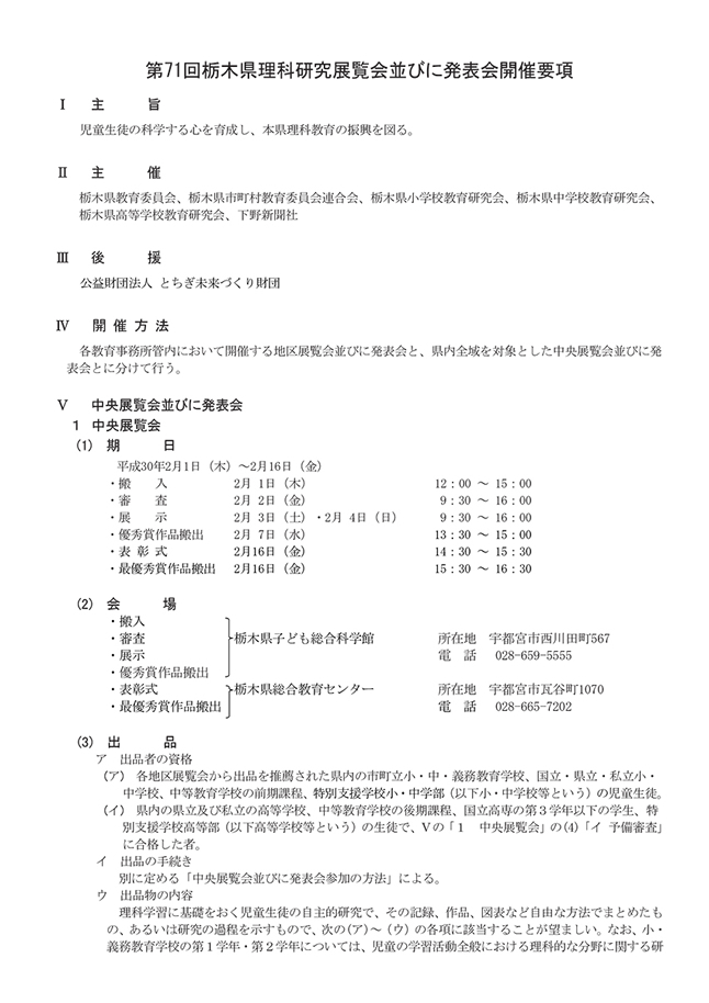 第71回栃木県理科研究展覧会並びに発表会(平成29年度) (