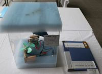 個 人- 自作の風洞装置を使ってゴムヘリコプターの飛行時間を長くするための条件を研究しています。昨年度の研究で解決できなかった課題について研究をしました。