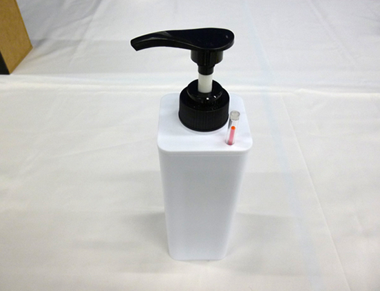 ポンプ式のシャンプーや液体石鹸の容器は、不透明なものが多く中身が見えません。シャワーの途中でシャンプーが無くなっているのに気が付き、ふたを外して容器の底に残ったシャンプーを使ったことが何度もあります。そこで、残りが少なくなったことが分かる容器を作ることにしました。