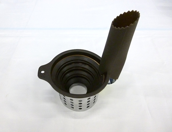 シリコン製のじょうごに生卵を入れると、金属製の外枠まで白身が広がり、その中央に黄身がセットされるようになっています。これで、黄身が真ん中にあり、白身も円い、整った目玉焼が作れます。