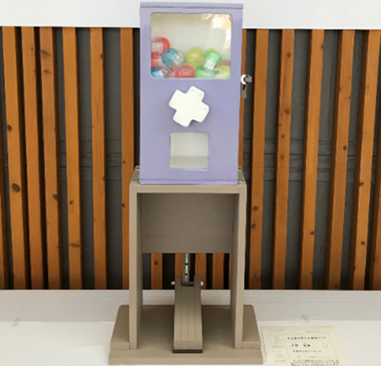 足踏みガチャスタンド 小山市少年少女発明クラブ 第4学年 小竹 真由さん