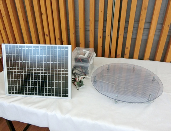 当初は、マンホールの内側に設置して、凍結しないようにしようと考えていましたが蓋を開けて設置することが難しいので、雪が降る予報の日に、マンホールの上に設置することを想定した形状にしました。電源はソーラーパネルを利用して動作するようにしました。温度センサーにより、気温が3℃になるとヒーターが入り、5℃になるとヒーターが切れる仕組みなので、電源のON/OFFを自動で制御する機能がついています。
