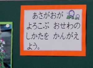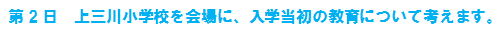 1 オリエンテーション 2 授業参観 第1学年生活科 活動名「あさがおが よろこぶ せわのしかた」 3 研究協議「小学校入学当初の教育」 |