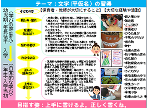 幼小連携の中心的立場にある小学校教諭、幼稚園教諭、保育所保育士、幼保連携型認定こども園保育教諭 | |||||||||||||||||||||||||||||||||||||||