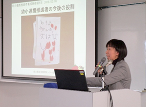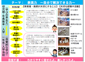 1 協議「報告に向けて」 報告「ジョイントカリキュラムを作成して」 2 講話「幼小連携推進者の今後の役割」 |