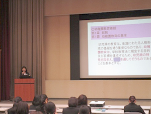 幼稚園教育要領、幼保連携型認定こども園教育・保育要領に基づき、幼児教育の基本理念、保育の営み、幼児理解、指導計画等に関する内容について講話や演習等により、実践的指導力、幅広い知見等を得させる。 | |||||||||||||||||||||||||||||||||||