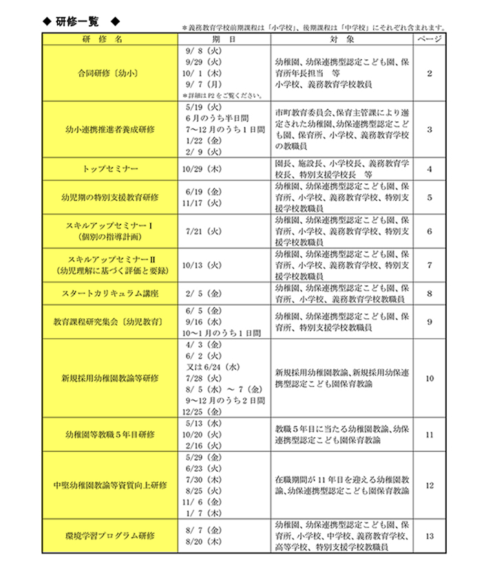 令和2(2020)年度 栃木県幼児教育センター 研修一覧