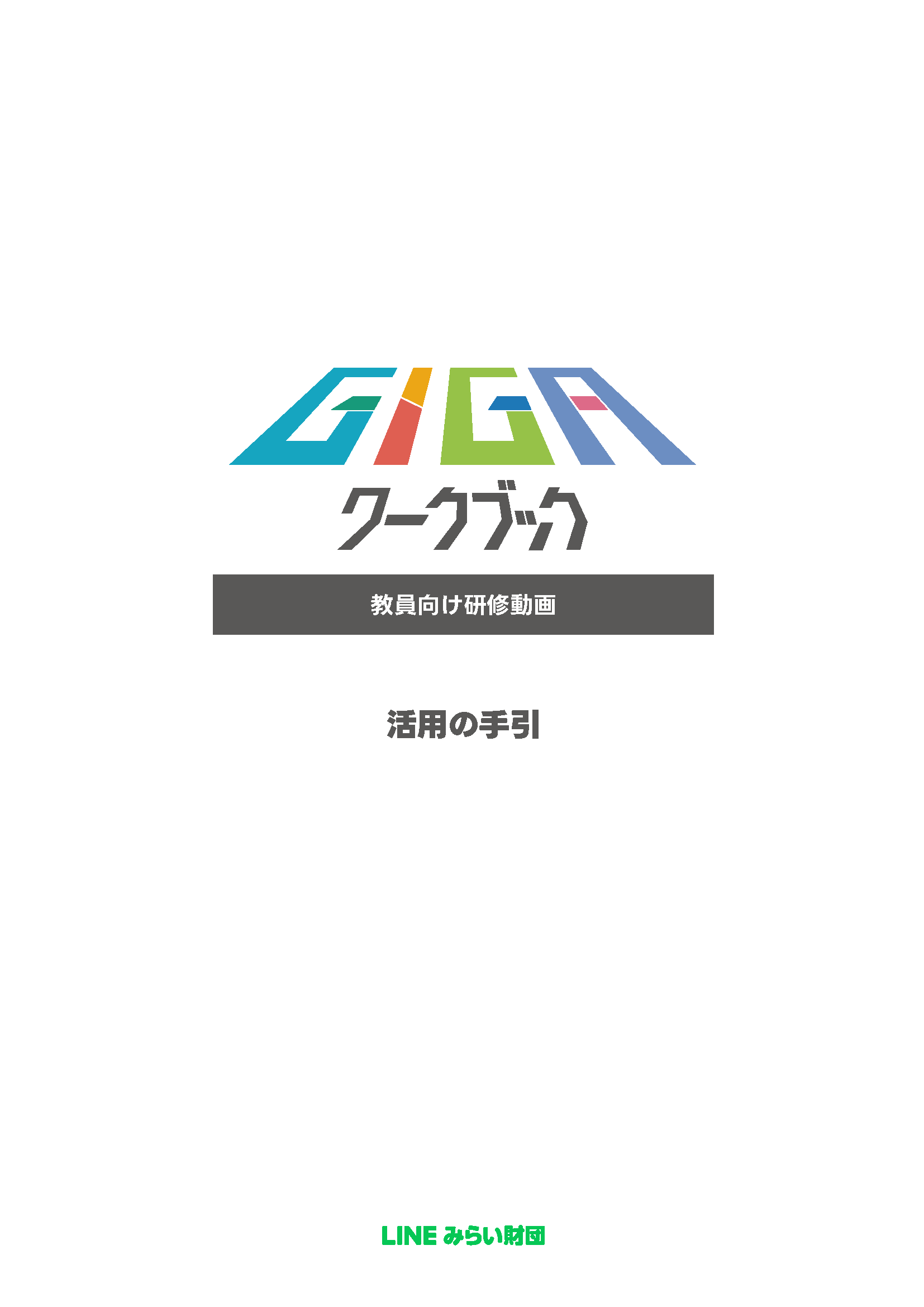 「GIGAワークブック」と研修動画を使って学校のICT・情報モラル教育担当者が自ら校内研修を実施できるよう、進行例やワーク体験の方法をまとめたサポート教材となっています。 小中高の教員に向け、情報モラル教育実施をサポートする研修動画「明日から実践できる活用型情報モラル教育」の活用の手引を提供開始 | LINEみらい財団 | 活動実績 |