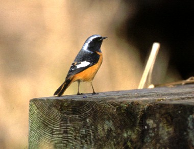 体の大きさ・特徴:スズメと同じくらいです。翼に白い斑(まだら)があります。 体の色:オスは頭が灰色です。顔が黒色で、腹がオレンジ色です。メスは茶褐色で、脇腹がオレンジ色です。 鳴き声:「ヒッ ヒッ」と鳴きます。 見られる環境:県内全域 季節:冬 その他の特徴:頭を下げ、尾を細かく振ります。あまり人をおそれません。