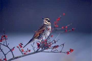 体の大きさ:スズメとカラスの間くらいです。 体の色:茶色い翼です。茶と白のまだらの腹です。 鳴き声:「クワッツ クワッツ」。 見られる環境:県内全域 季節:冬 その他の特徴:直線的に飛びます。秋から冬は群れを作ります。