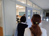 その後、「校内施設見学」では本校の生徒による案内や説明が行われました。定時制通信制の生徒会役員や有志の生徒78名が、1階から4階までの経路を普段の学校生活の様子とともに交えながら一生懸命に説明を行いました。