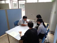 会議に先立ち午前10時前から40分間にわたって、学校評議員の皆様に学習に取り組む生徒の皆さんの様子をご覧いただきました。この時間には、定時制通信制の2時限目の授業(面接指導)が行われていました。