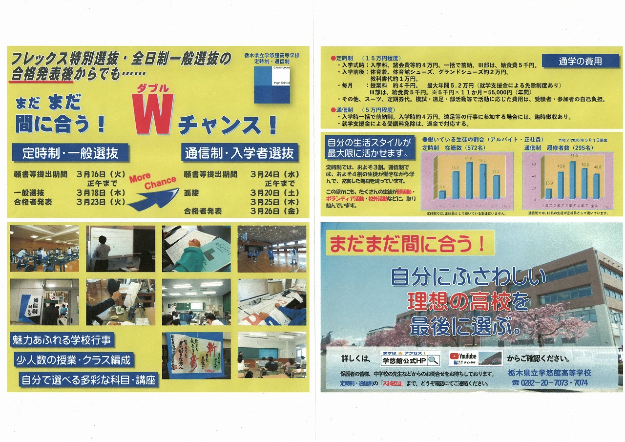 学悠館高校の事務室窓口でお受け取りになれるほか、関係機関の窓口でも配布をお願いしている所があります。また、本HPのメニューからご覧になることもできます。