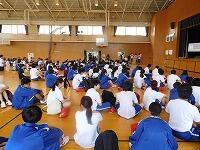 およそ80人の皆さんが、体育館1階で「進路講演会」に参加した後、実践型非言語コミュニケーションワークに取り組みました。非言語の実践演習を通じて、チームやコミュニケーションの重要性を認識していたようです。最後に、各教室で系統・分野別の「出前授業」。大学や専門学校の先生の話に耳を傾けました。