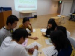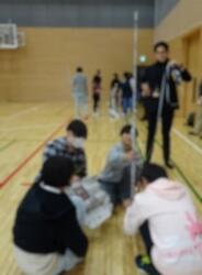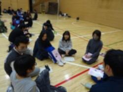 1日目。『出会いのつどい』では、小中学生の前に立ち一人ずつ自己紹介をした後、小中学生3~4人と高校生1~2人で活動班を作り顔合わせをしました。その後は、『仲間づくりレク』『館内ウォークラリー』『参加者選択プログラム』と活動していきました。初めはお互い緊張している様子が見られましたが、高校生が積極的に声をかけて話していくうちに小中学生の緊張が解れていくのがわかりました。