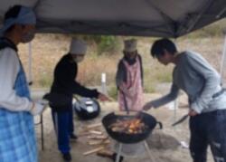 3日目。午前中は『アウトドアクッキング』でカレー作りをしました。もちろん、薪で火をおこしてカレー調理をしたり飯ごう炊飯でご飯を炊いたりしましたが、最終日となれば活動にもかなり慣れ、みんな手際よく作業を進めていました。ごくシンプルなカレーでしたが、とてもとてもおいしかったです。最後は『別れのつどい』です。班で感想を出し合って思いを共有しました。小中学生からたくさんの笑顔が見られ、この活動をとおして達成感を味わうことができたのではないかと思います。