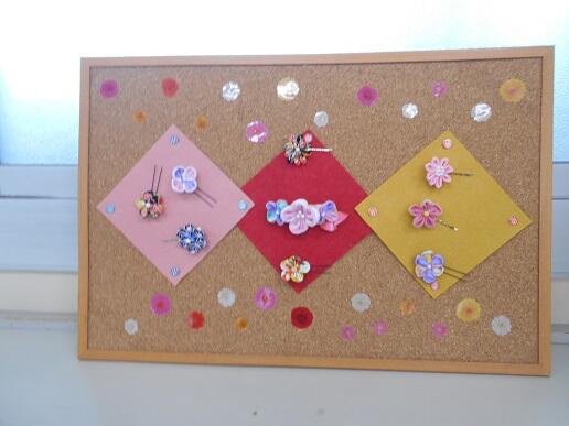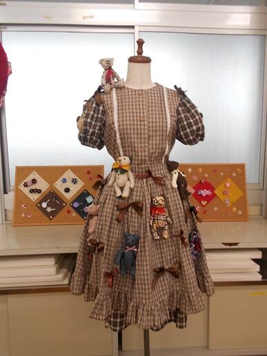 作品数は少なくなりましたが、各自が製作したテディベアを合わせて作ったドレスと、つまみ細工のヘアアクセサリーを出展しました。