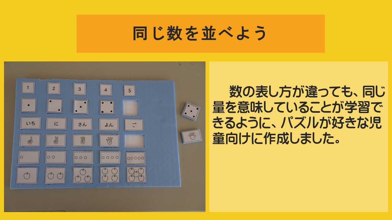 本校の教職員が、児童生徒の実態に合わせて作成・活用している教材・教具の一部を御紹介いたします。