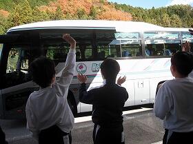 和気あいあいの交流ができ、帰りは名残惜しく、バスで帰る轟小学校の皆さんにいつまでも手を振っていました。