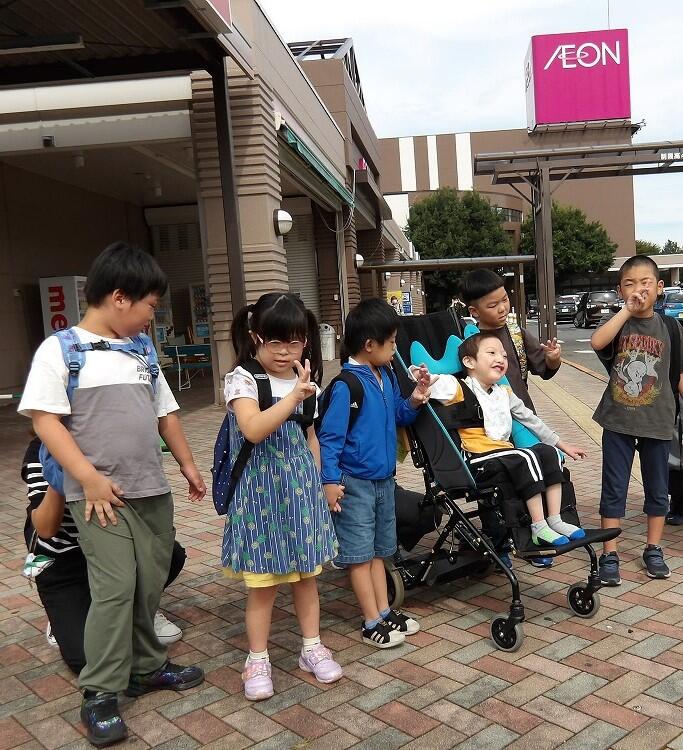 10月3日(金)に校外学習を行いました。スクールバスでJR今市駅まで行き、そこからダイヤルバスに乗り、イオン今市店まで行きました。事前学習では何度もバスの乗り方を練習しましたが、本物のダイヤルバスに乗るのは全員が初めてでした。順番に自分で整理券を取り、ダイヤルバスに乗り込みました。そして、降りるときは運賃と整理券の両方をしっかりと投入口に入れることができました。A組の児童は福祉タクシーを利用しました。とても丁寧な運転で、乗車中も笑顔が見られました。イオン今市店に着いてからダイヤルバスを利用した友達と合流しました。合流したときは、お互いニコニコの笑顔でした。