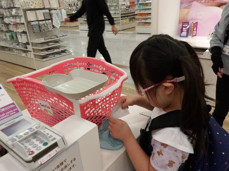 お楽しみは、セリアでのお買い物。たくさんの商品の中から「好きなもの」を一つ選んで買いました。「どれがいいかな。」と迷いながら買う物を決め、お金を準備したり商品を受け取ったり…。楽しく買い物をしました。