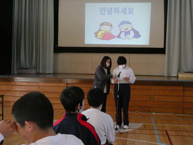 10月30日に日光市の国際交流員の先生にお越しいただき、国際理解教育を行いました。今回は韓国の先生にお越しいただき韓国の文化について学習しました。生徒は事前学習で韓国語の自己紹介を練習したり、先生への質問を考えたりしました。当日は、一人ずつ先生に韓国語で自己紹介をすることができました。先生は笑顔で自己紹介を聞いてくださり、生徒たちも笑顔で交流することができました。