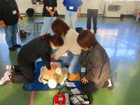 細かく丁寧に御指導いただきながら、心肺蘇生の仕方やAEDの使い方について説明を受けたり、人形を使いながら実践したりしました。参加された保護者の方々も、救急車が来るまでの対応や疑問・不安に思うことなどを積極的に質問するなど、とても真剣に研修を受けていました。